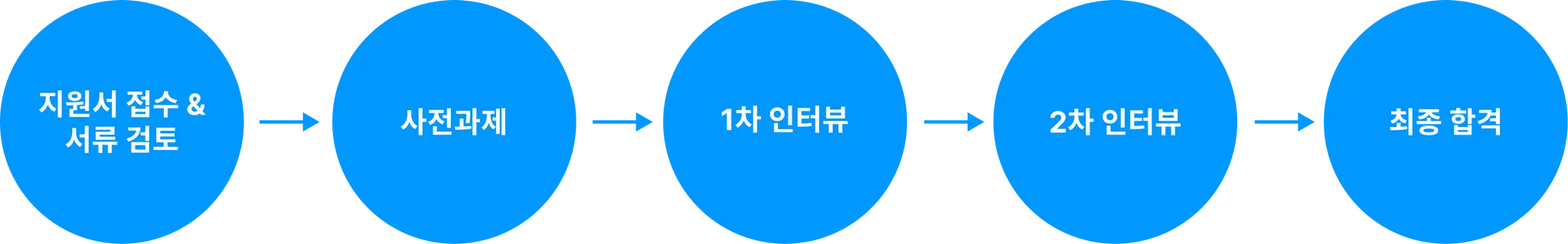 지원서 접수 및 서류심사 : 영업일 기준 기본 3일, 최대 5일이내 결과를 안내드리고 있습니다. 단, 연말·연초 기간에는 일정 운영상 결과 안내가 평소보다 다소 늦어질 수 있으니 참고 부탁드립니다.