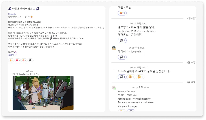 타운홀에서 듣고 싶은 노래를 신청해요!